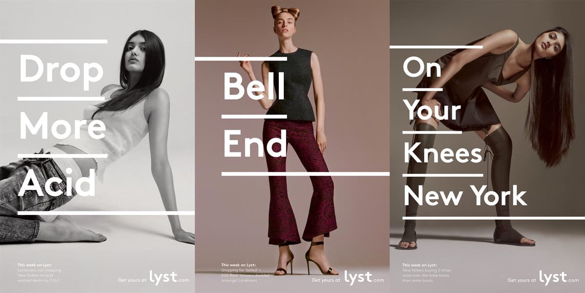 Anomaly’s first print campaign for Lyst, the clothing website, combines glossy fashion shots with provocative taglines – such as “bell end”.